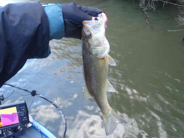 この日も早々にイモ30改のショートダウンショットで35cmクラスをキャッチ出来た。ノーフィッシュのプレッシャーと背中合わせになりがちな厳寒期の釣りにおいて早々にバスを手にできたというのは気持ち的にかなりラクになれる。