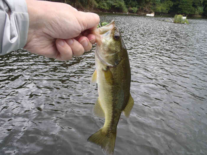 夢の島周りのロープに絡む流木溜まりに付いているであろうバスをベビートーピードで狙い1尾目をキャッチ出来た。