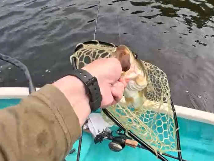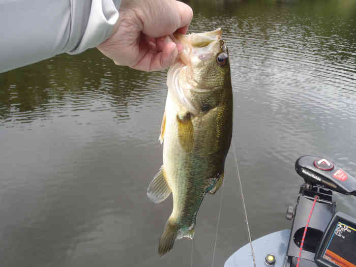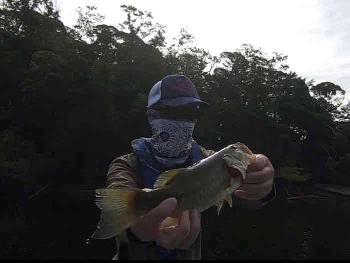 フラブラブダブルテール2.5インチの7gフリーリグを落としてボトム付近でホワホワさせるとすぐに答えが返ってきた。丁度バスのスクールも射していたようで怒涛のラッシュに突入。スッポ抜けてしまうケースもあったが、2投連続でバイトが出るタイミングもあった。その後も飽きないペースでバイトが続く。