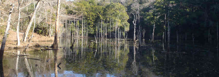 かねてから片倉ダムは立ち木の多い湖だということは知っていたが、実際に釣ってみて感じたことは水面下に沈んでいる立ち木も相当に多いという事だ。特にバンク沿いは立ち木が全く沈んでいない場所の方が珍しい。常に立ち木の中を釣ることに等しいため、喰い込み重視のロッドや細いラインでは心もとない気がした。また前回はスリムタイプのタングステンダウンショットシンカーを多用していたのだが 必要以上に細かい場所にまで入り込み過ぎ、かえってスタックが多発することになった。