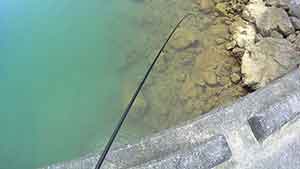 続いて同じ漁港の少し奥でやってみると今度はメッキっぽい魚がチェイス!