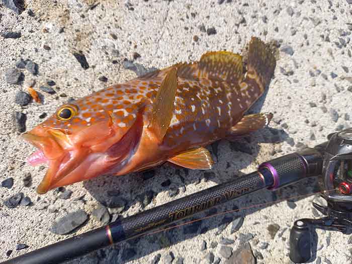 3.4inでしつこく探って小さなアラカブを避けるしかない状況で、何とかキジハタを1匹追加。本来であれば、ベイトの量を考えると、もう少し居ていいんですが、なかなか上手くはいきませんね。