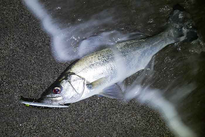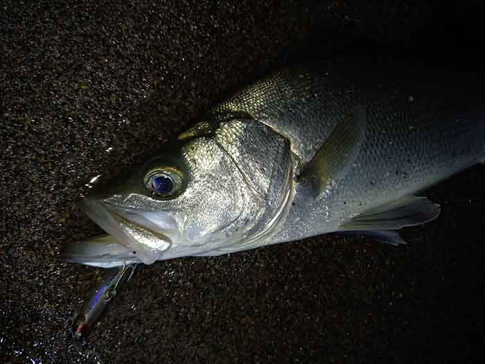 広大なサーフの中から、スポットを見付けだすと、結果は自ずと付いてきます。ただ、相変わらずマルスズキは姿を見せず、ヒラスズキが連発です。