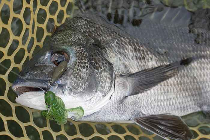 結果から言うと、チニングは絶不調。シャローエリアには手の平以下のチヌは居るものの、それ以外は姿なし。大型サイズは水深のある港内や堤防の際に。