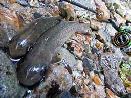 すると、すぐに岩魚がヒットし数匹が追ってくるのが分かり、ネットに入れてもう一度キャストをすると、またまたヒットでした。