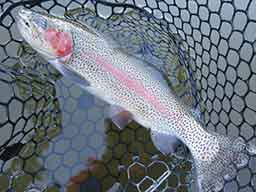 そこで、場所を移動しながら探りを入れていると、レインボーにまじってブラウントラウトがヒットするようになりました。