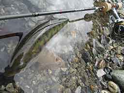 当然カラーを替えながら根気よく続けると、またまたヤマメのヒットに一安心しました。