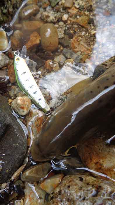 上流域とは違い、一投目からルアーを追う魚影が確認出来ました。