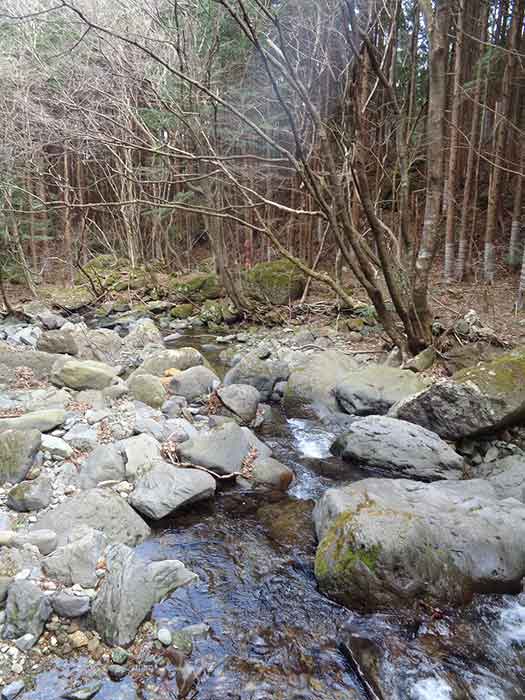 更に上流は、杉の木の間を流れる区間で、一気にくしゃみが・・・・