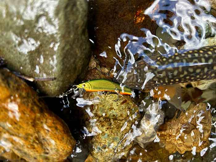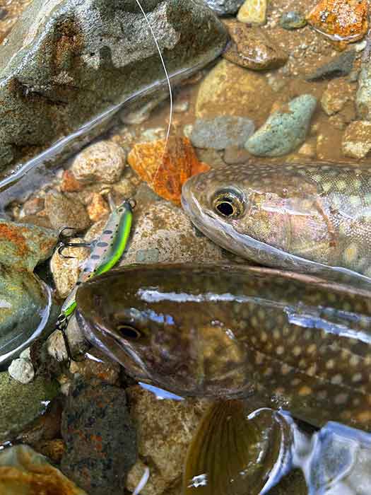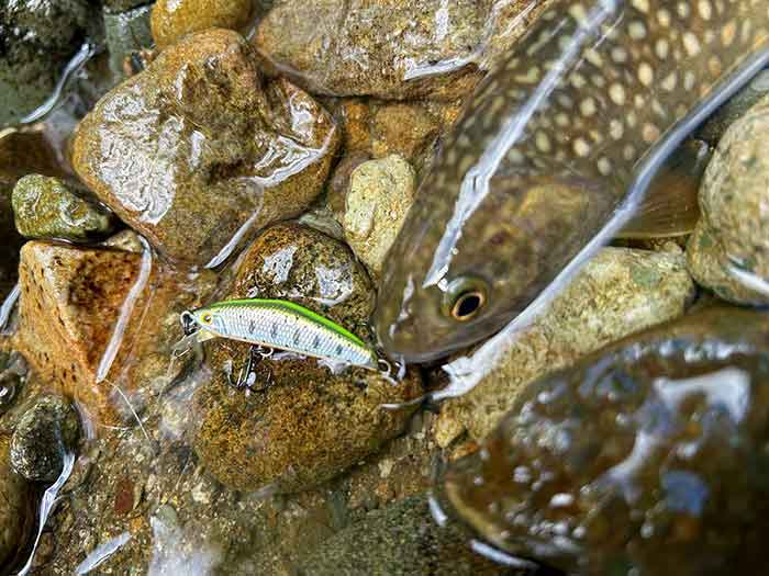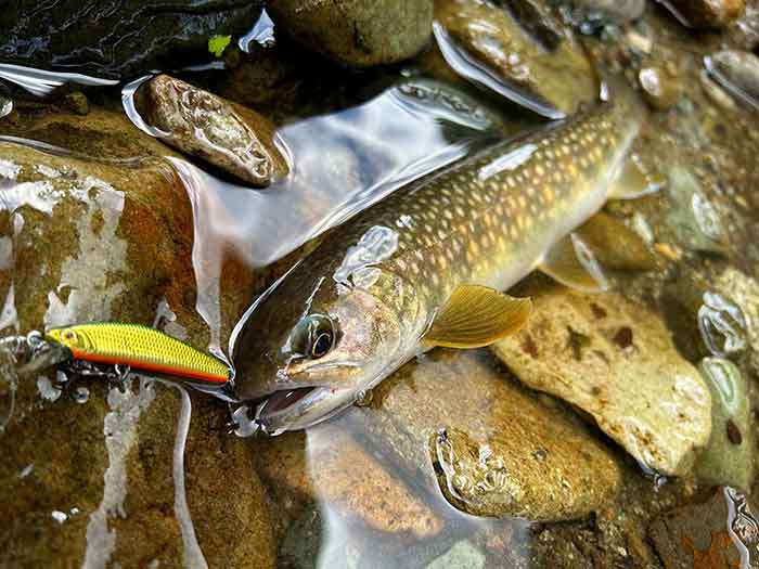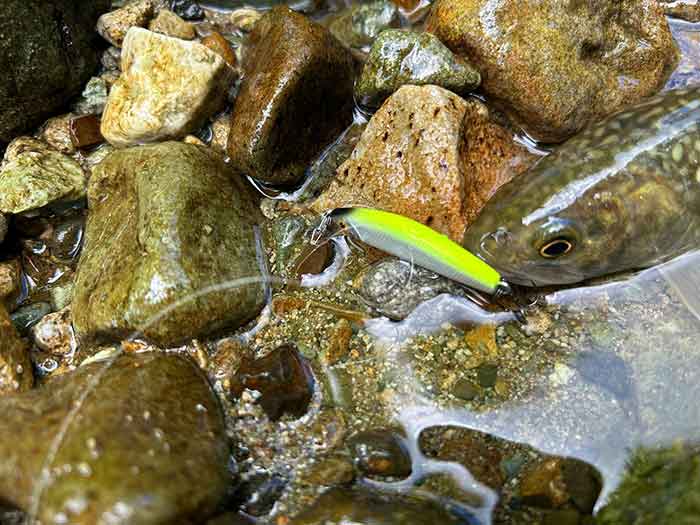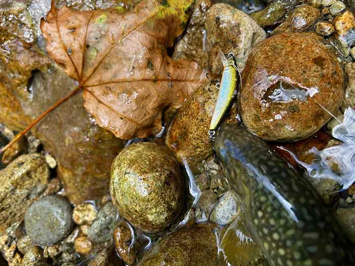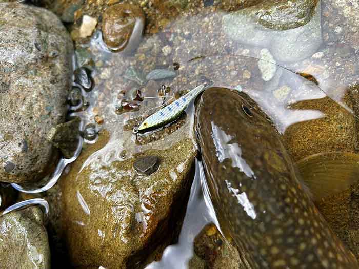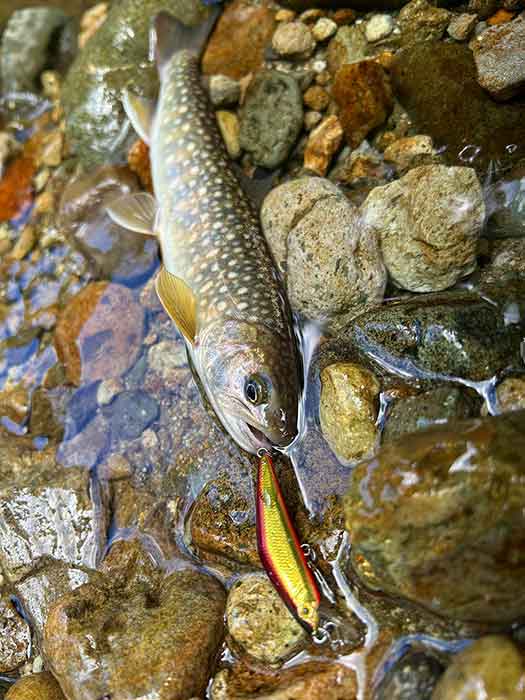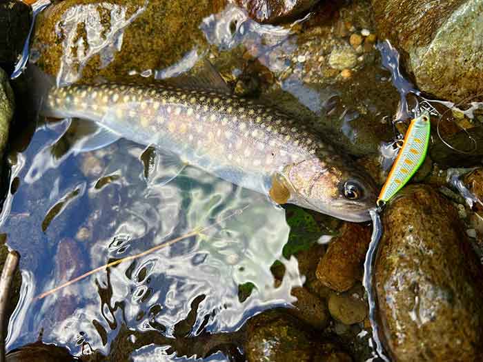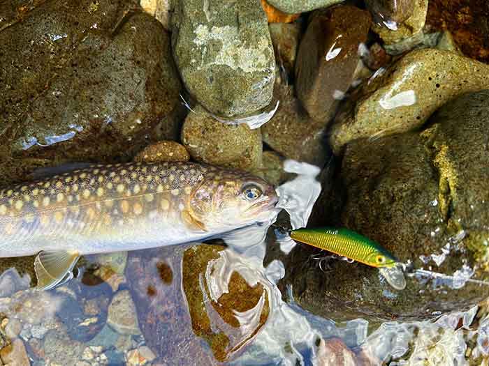 ルアーのカラーを換えながら釣り上がると、ポツポツと岩魚が遊んでくれました。