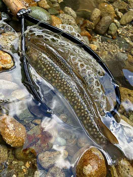 逆サイドのポイントがあるので、ネットに岩魚を入れてからポイントにキャストしました。