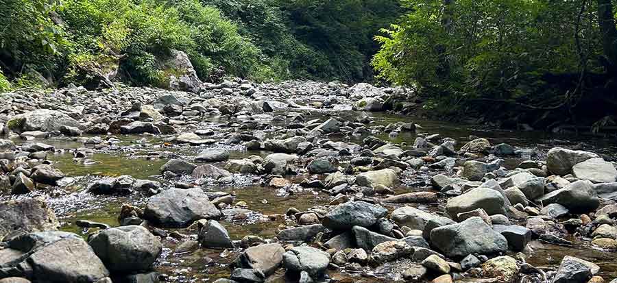 その後も岩魚との楽しい時間が過ぎると、前方に堰堤が見えました。