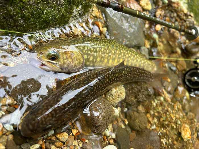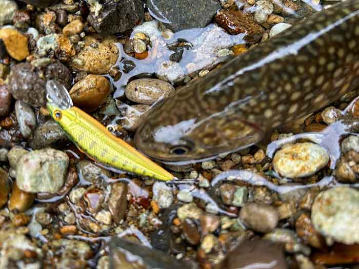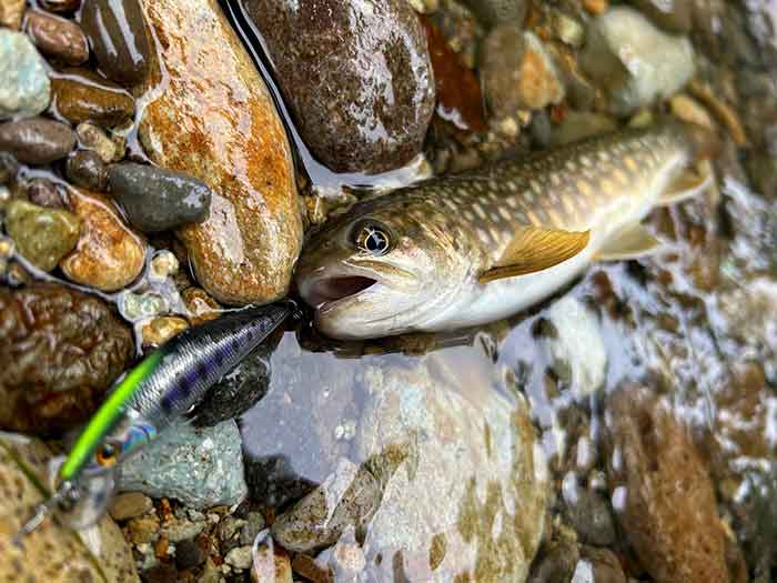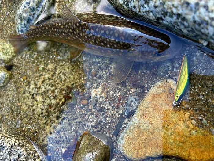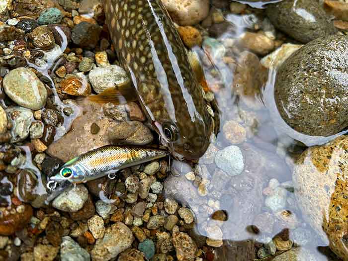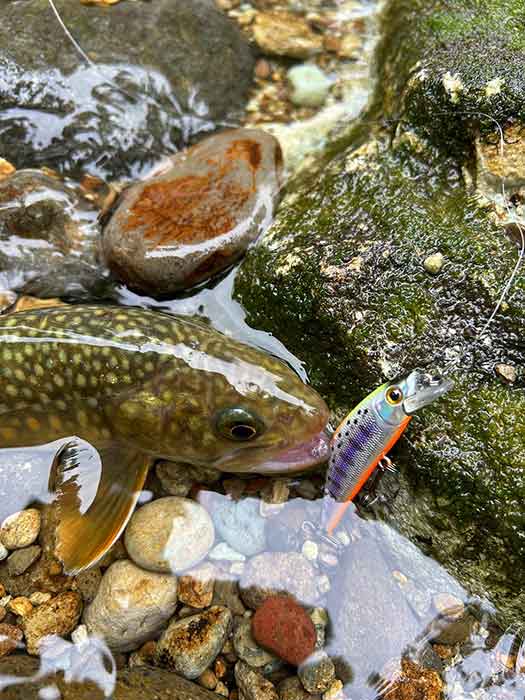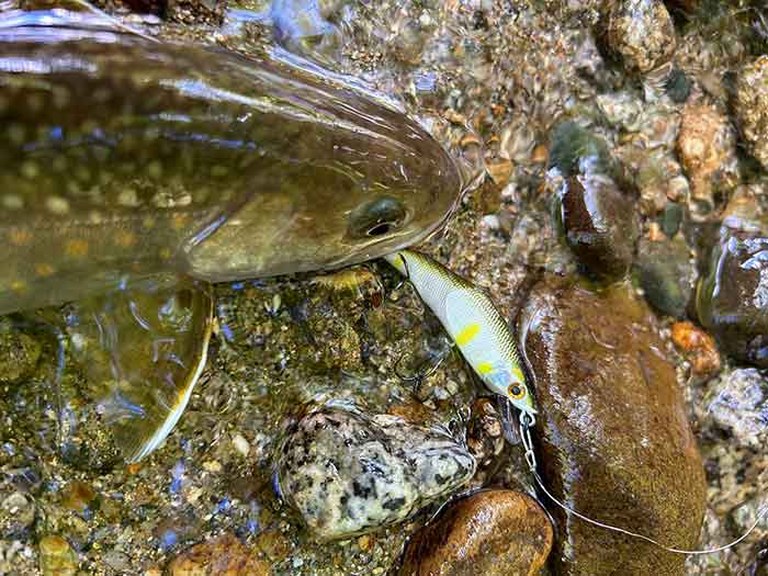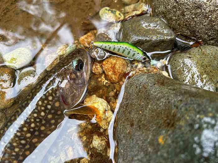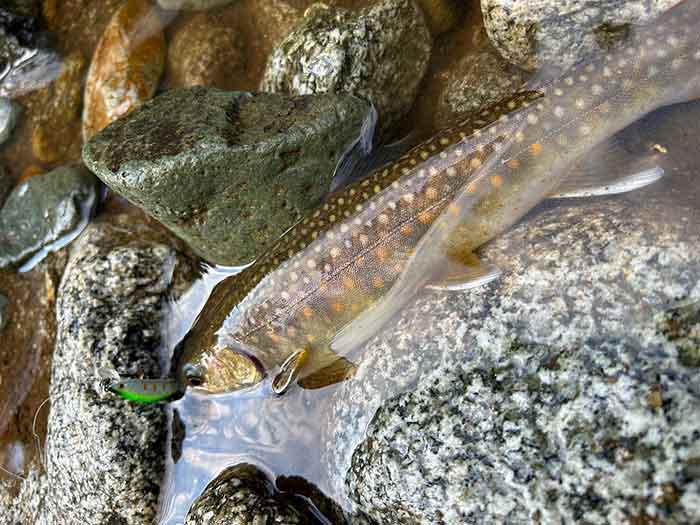 渇水で神経質になっていた岩魚でしたが、素早い泳ぎでルアーを追ってのヒットでした。