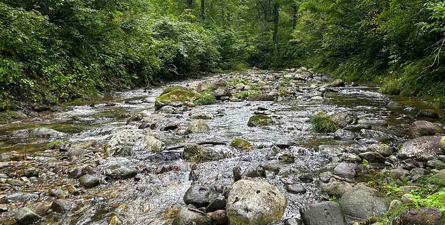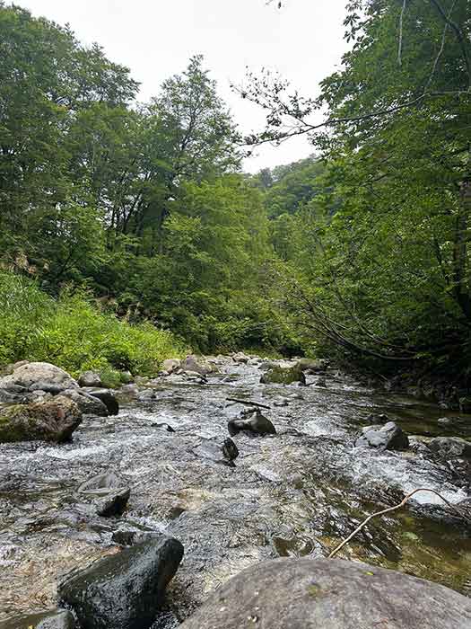 場所移動も出来ない地域でしたので、ダメもとでタックルをセットして入渓をしました。