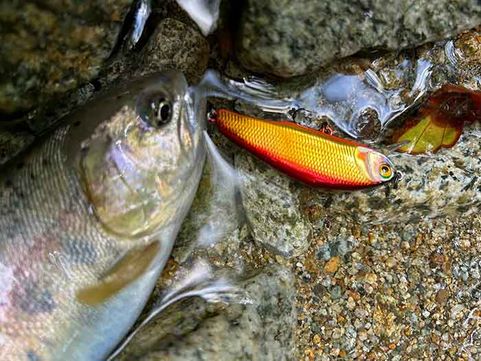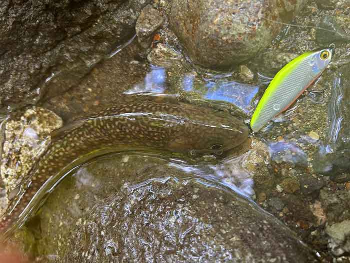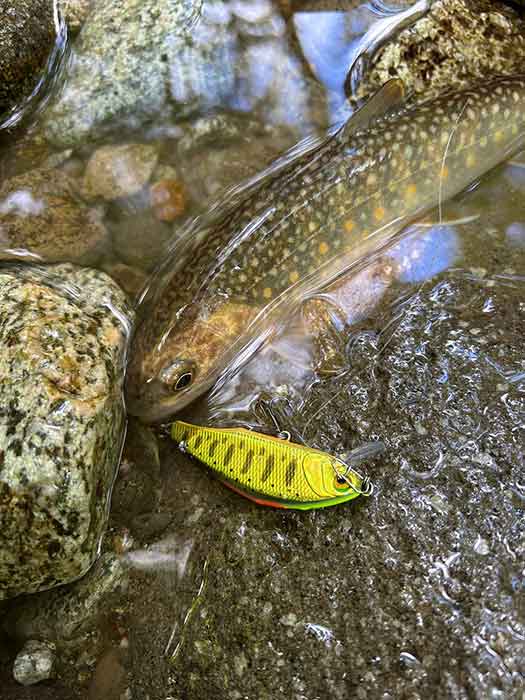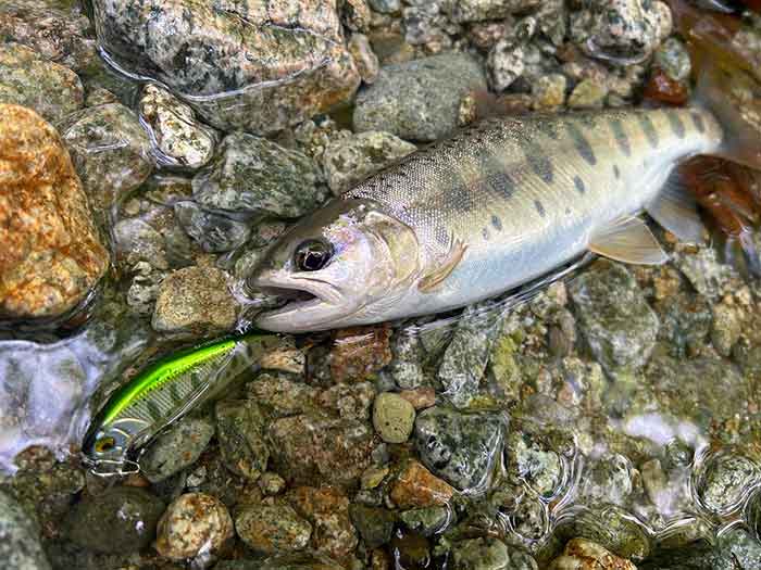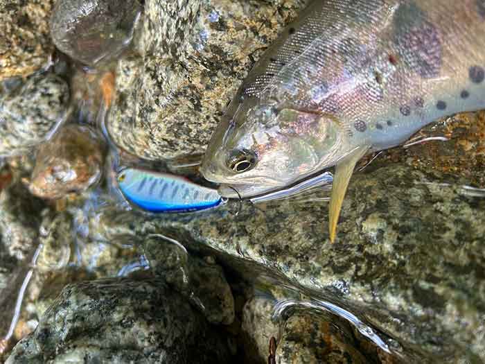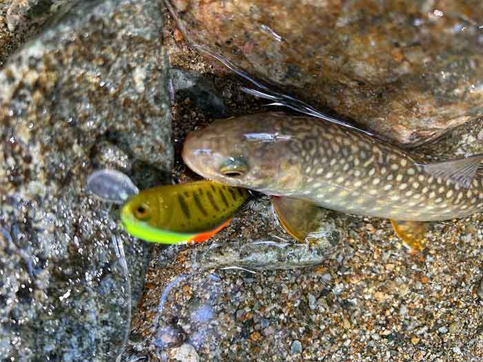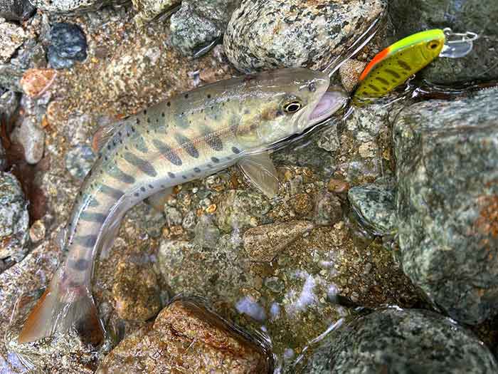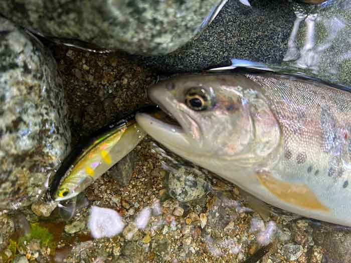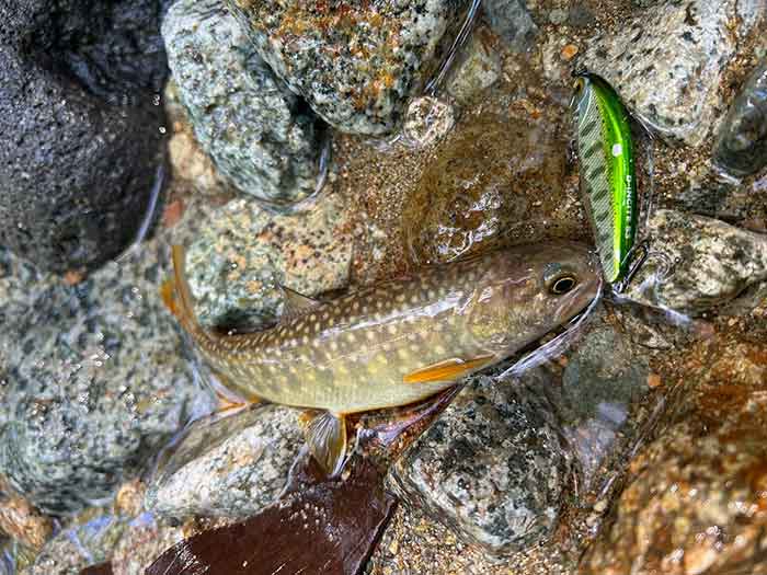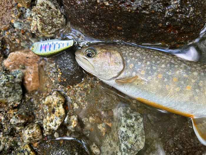D-インサイト53のカラーを換えながら、岩魚のポイントを攻めると、狙い通り岩魚のヒットが続きました。
