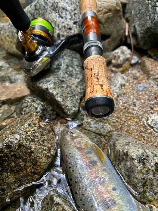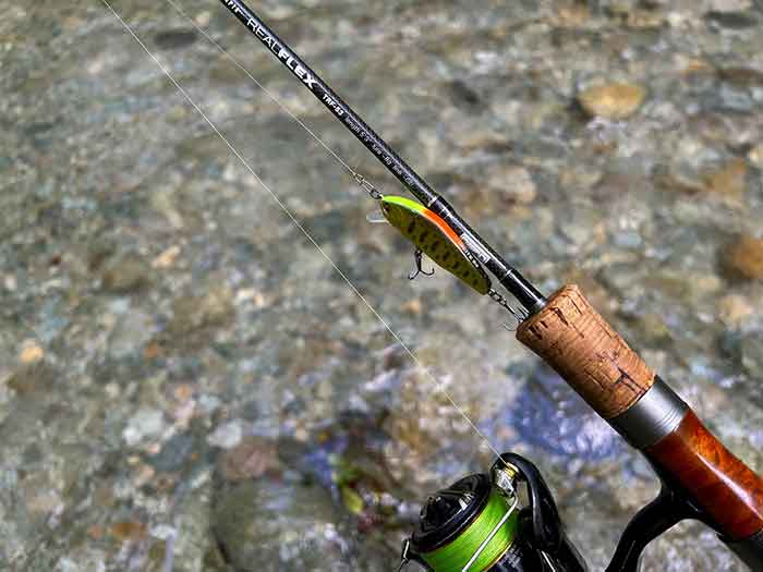 ロッドは、ルアーを選ばずに現場での流れを違和感なく対応できるトラウティンスピン リアルフレックス TRF-53を使いました。