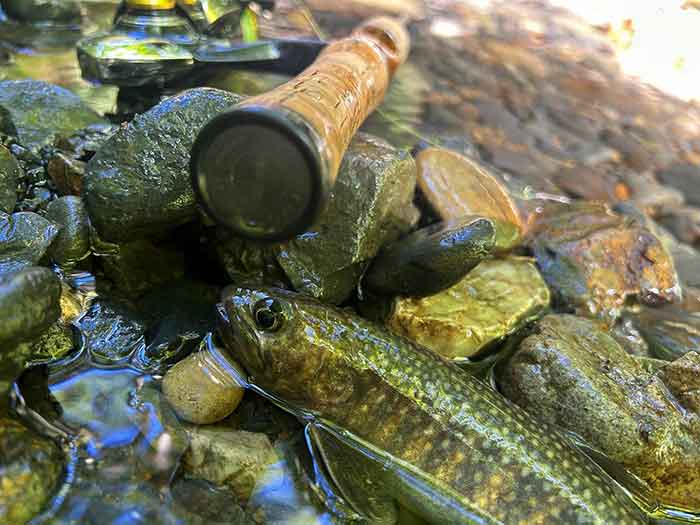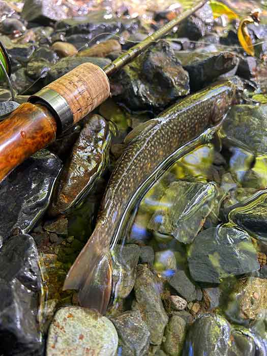 アップで狙うより、サイドからダウンで流れを利用したヒラ打ちで狙うようにすると、2匹目の岩魚がヒットしました。