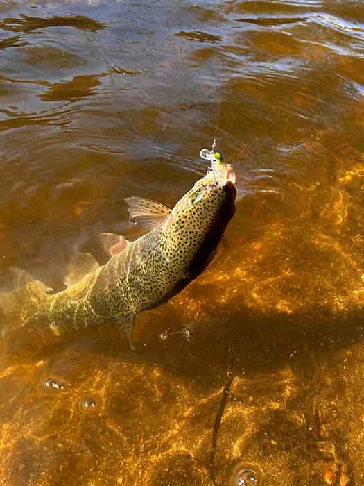 着水と同時に反応をみせるトラウトが多い状況でしたが、ヒットさせることが出来ずに見えているだけにストレスを感じました。