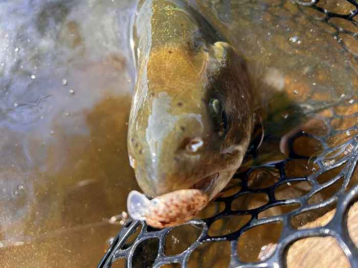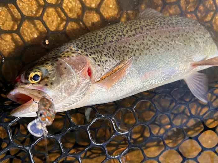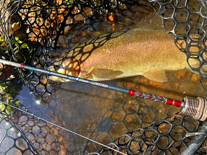パワフルな引きでしたが、レインボートラウトみたいなジャンプは無くずっしりと重い引きでした。