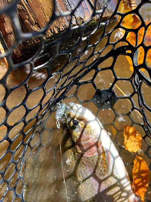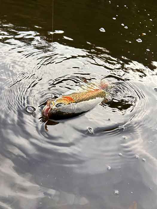 その後、4種類目となる普通のレインボートラウトもヒットし、水面上で遊ぶ事の出来るカディスの楽しさを味わうことが出来ました。