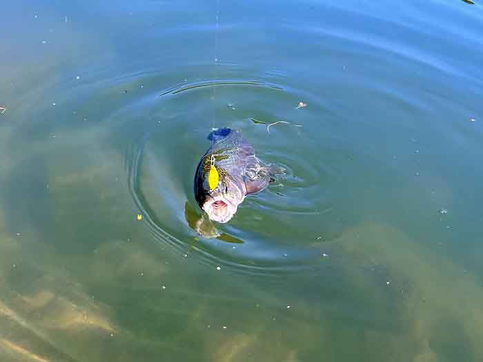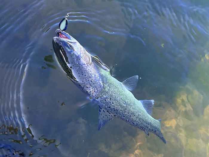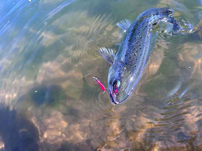 多くのトラウトは表層付近で回遊していたため、キャストしてロッドを立てての表層狙いを徹底的に試してみました。