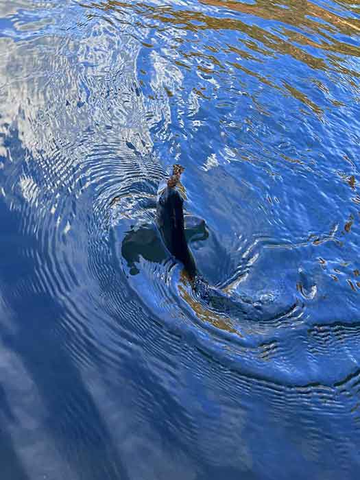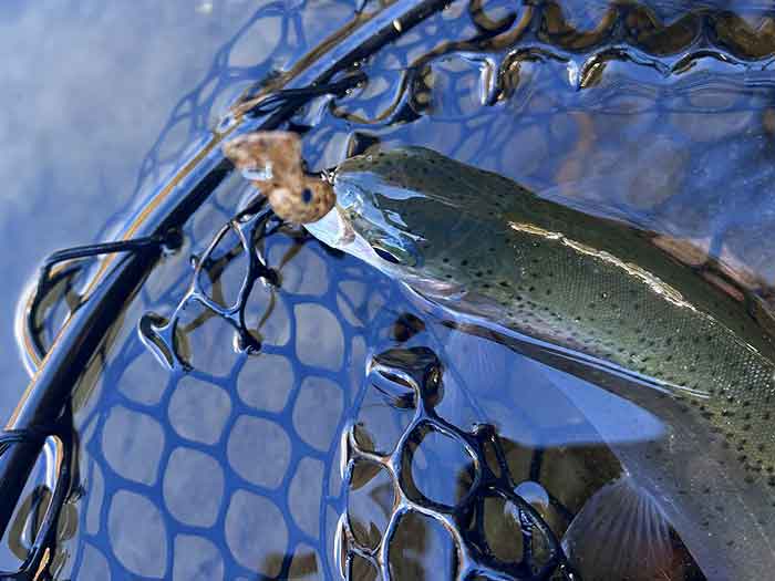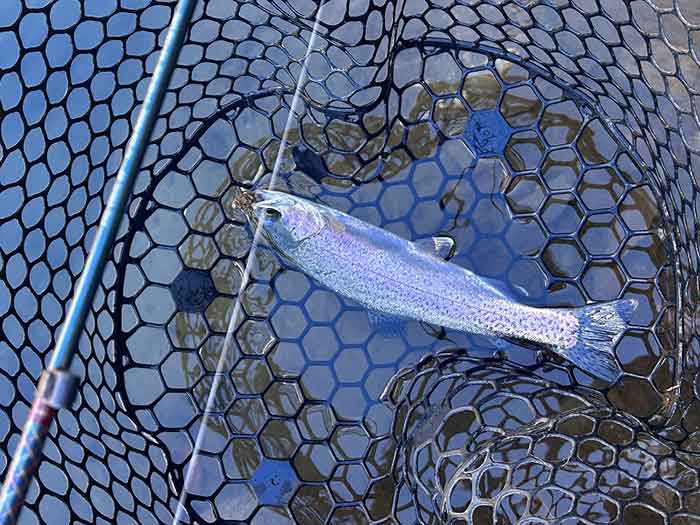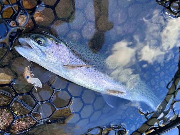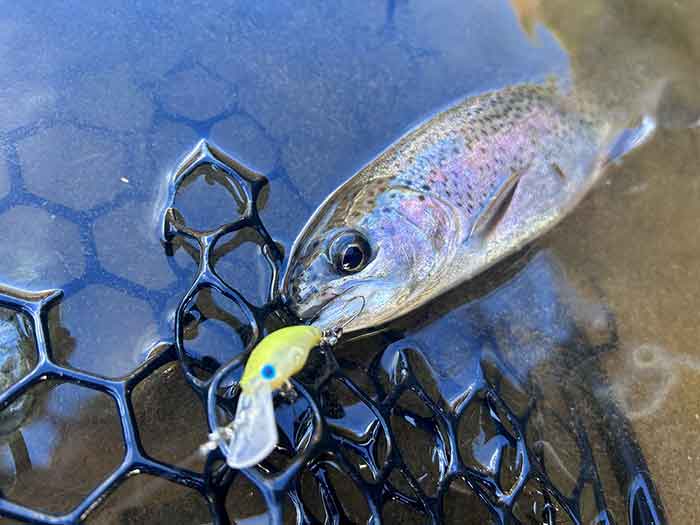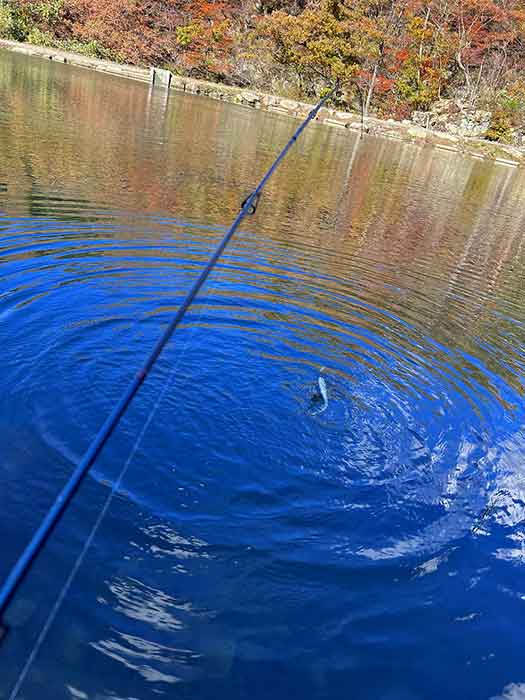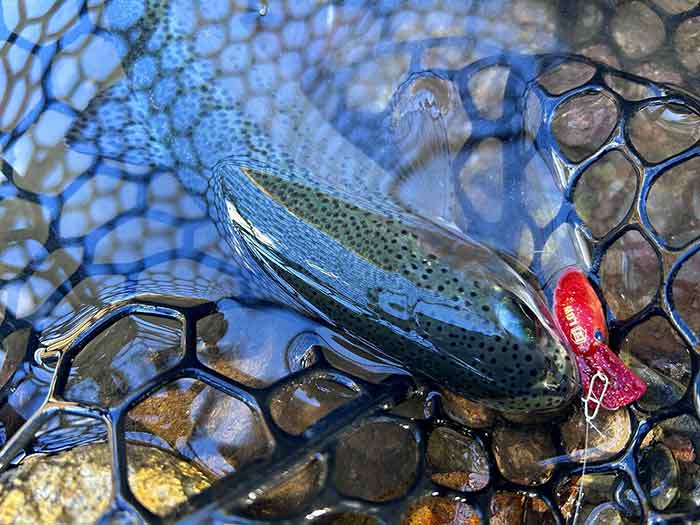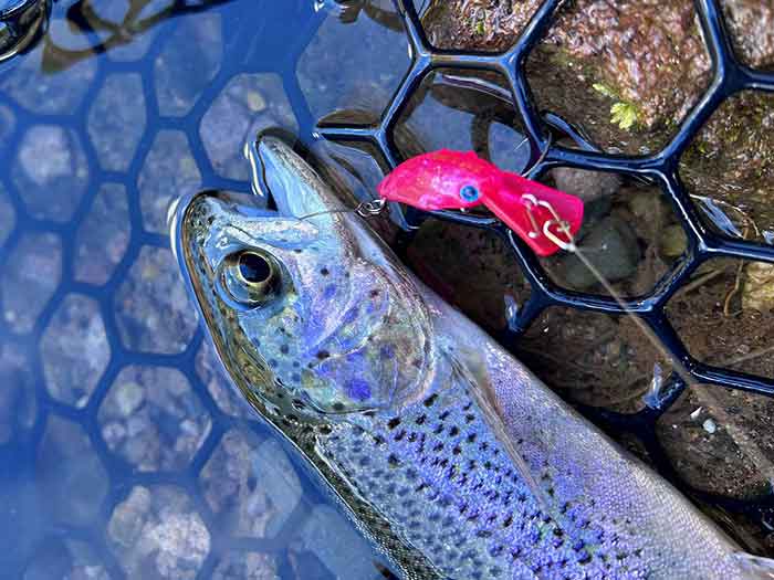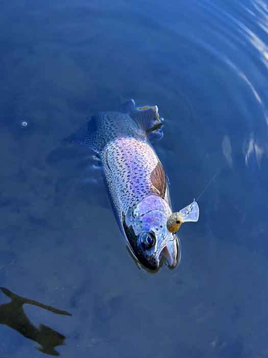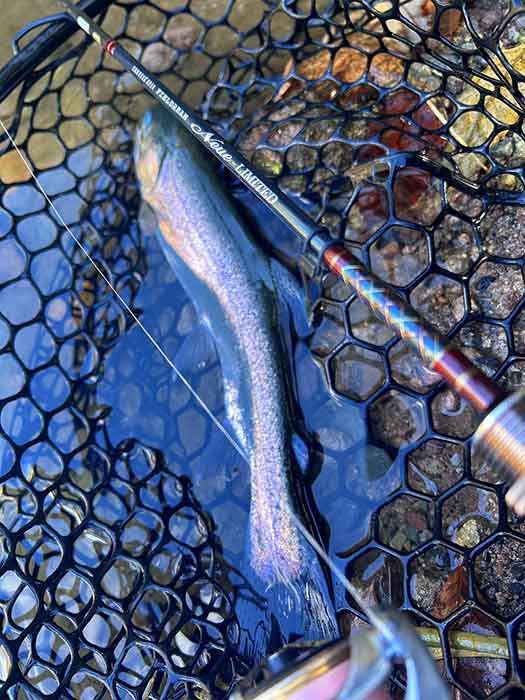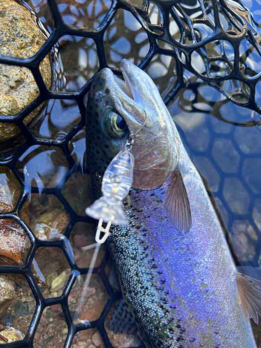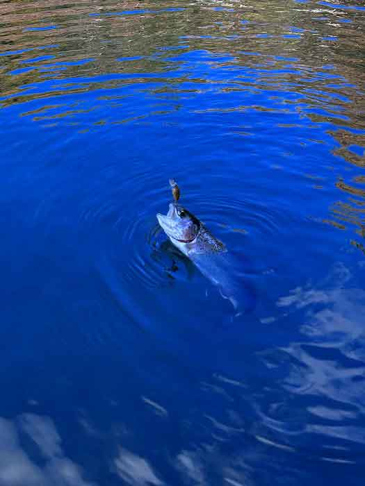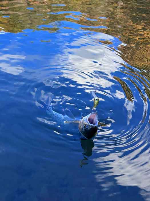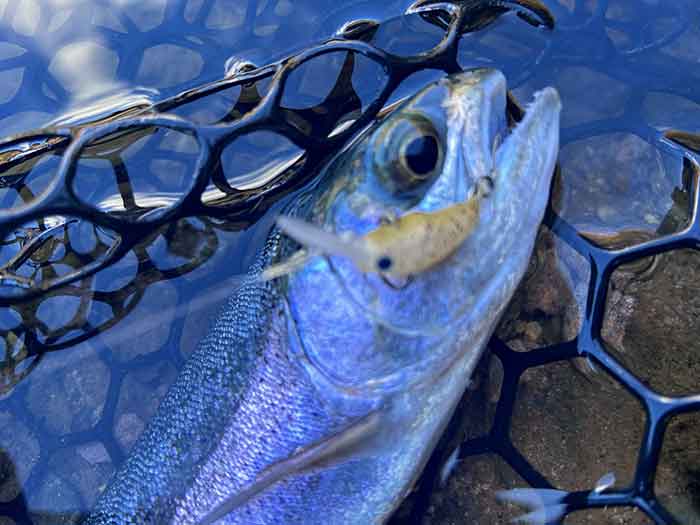 また、一気に潜らせてからストップして上がる姿勢になると、食べたくてたまらないトラウトがいてバイトが多く発生して気が抜けない釣りでもありました。