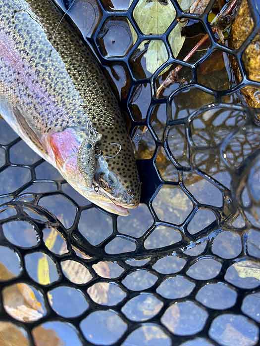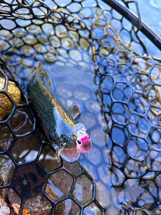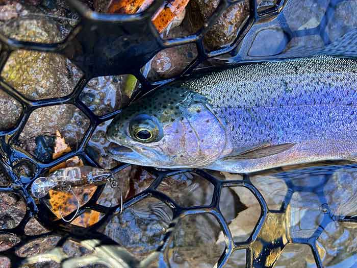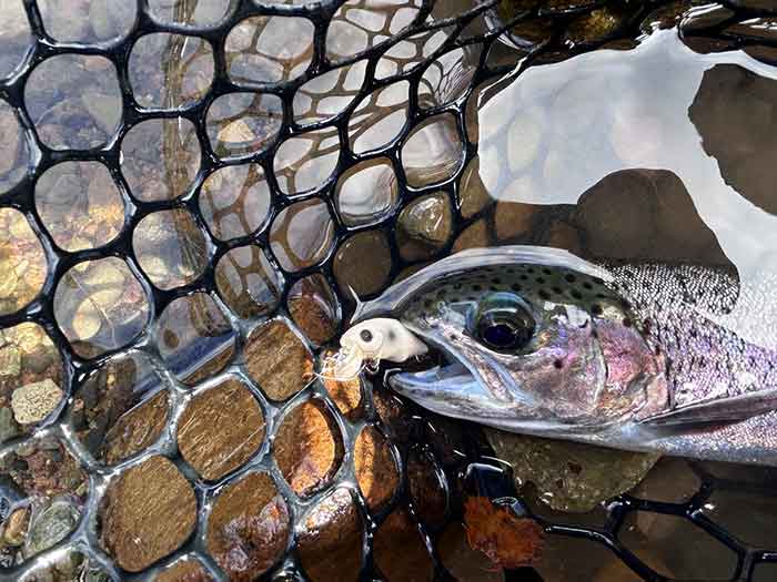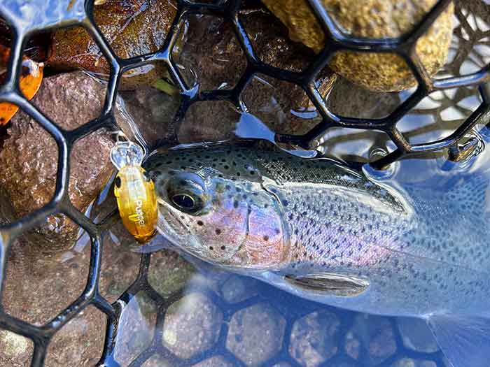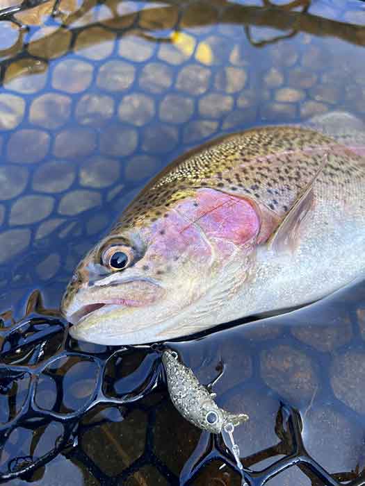 水面に出てくるトラウトは、トラウト自身がリスクを持って出てくるので、素早い動きでアタックし、見える釣りの為に楽しくなります。
