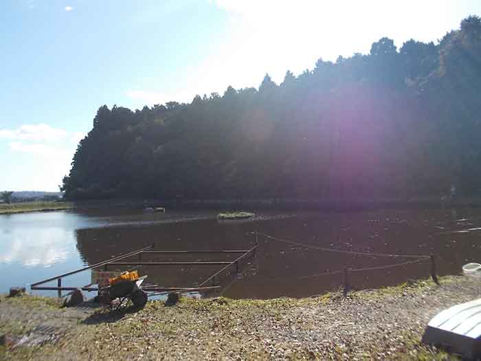 アウトレット付近は日陰でしたが、インレット付近は日当たりも良く、薄っすらと魚影も確認できます。