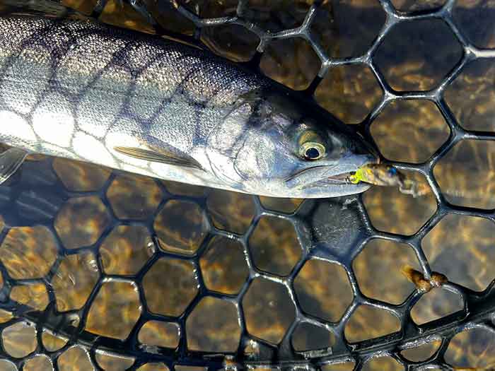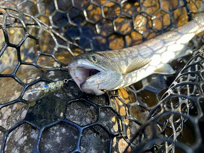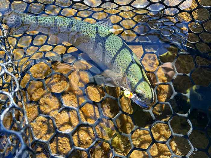底の泥・砂を巻き上げながら引いてくると、それを追ってくるトラウトの姿を確認しているだけでも楽しい時間でした。