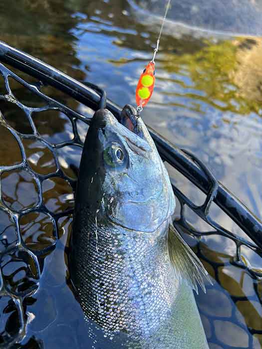 結果からいうと、ちっちゃなズルビーのボトム攻略は、飛距離で広範囲に攻めることが出来るので、この時期のトラウトに効果的でした。
