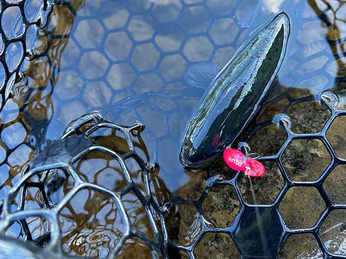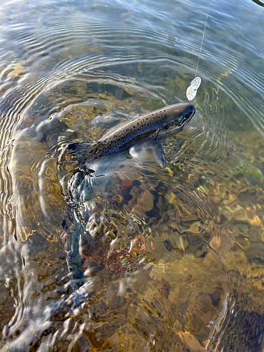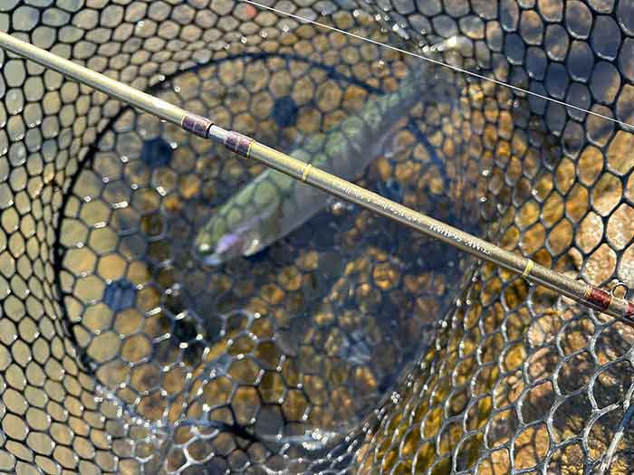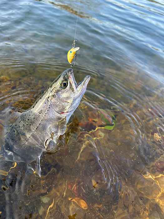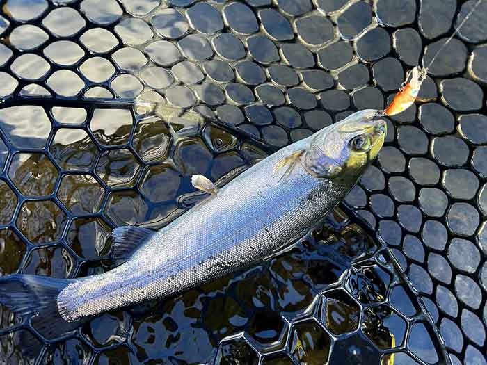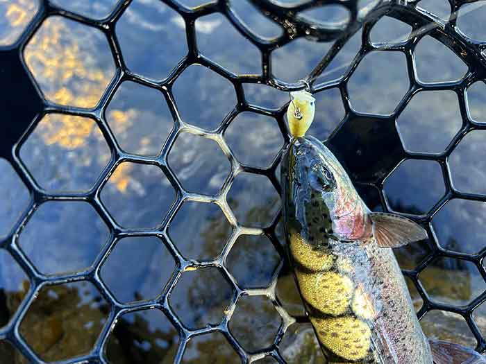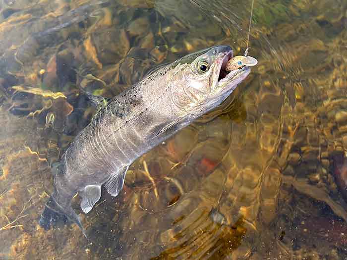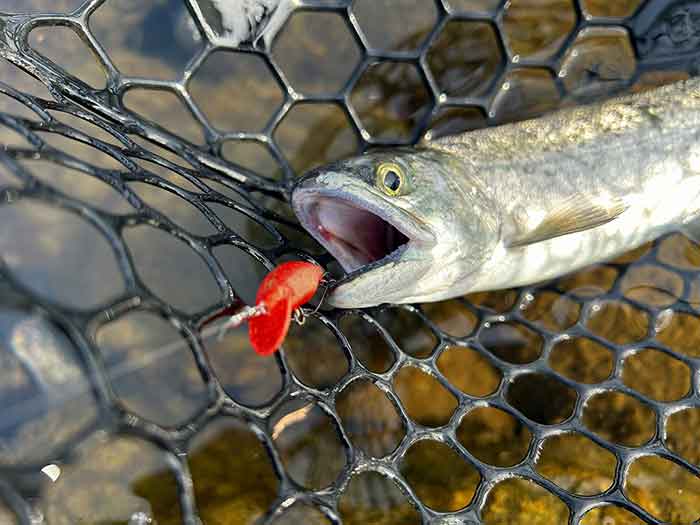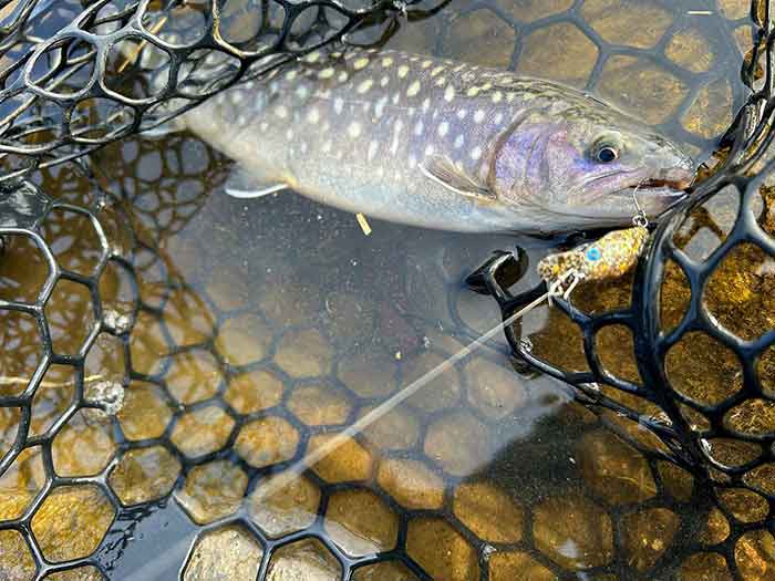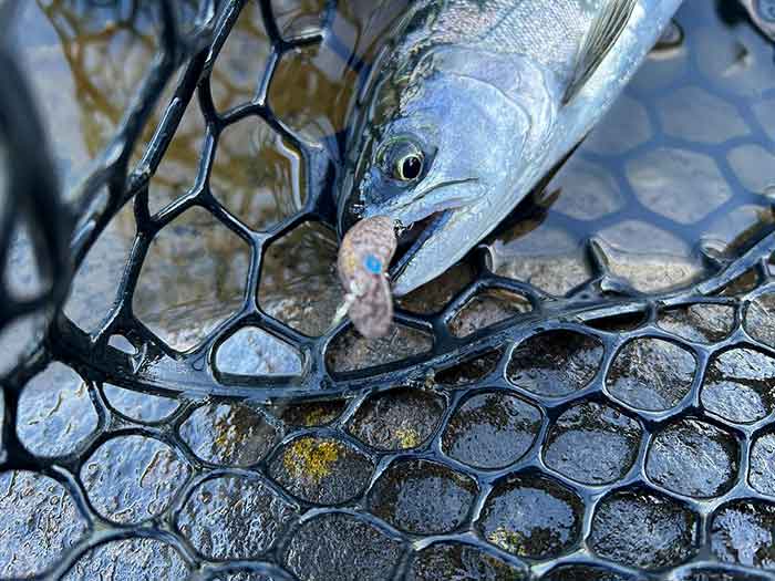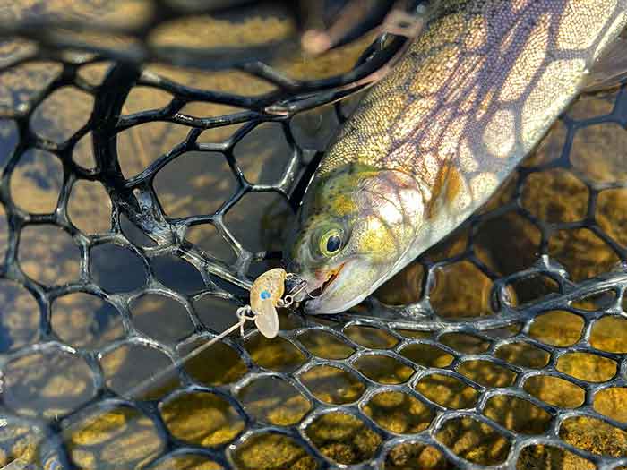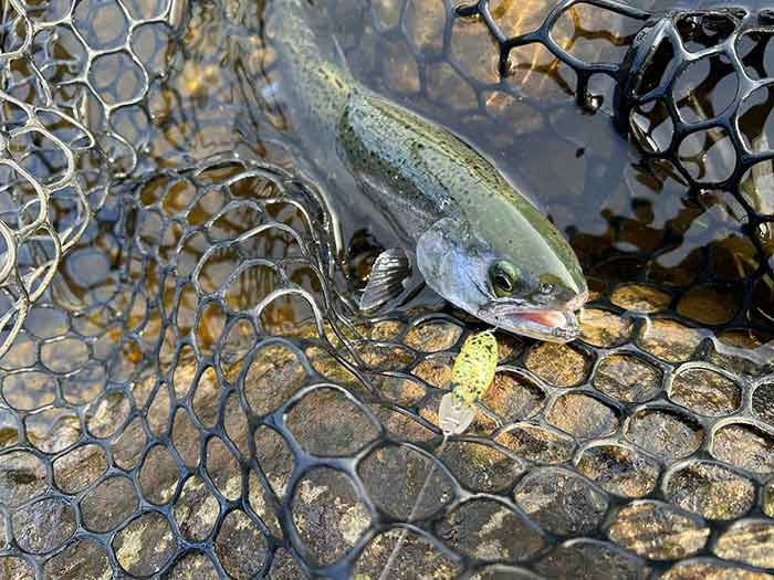 想像ですが、水中でパクパクと咥えてすぐに吐き出すために、ラインに出る動きもわずかで、低温時のトラウトには、興味を示すものの様でした。