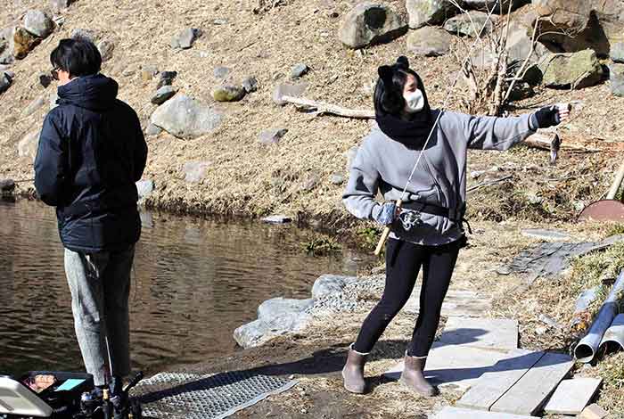 高崎市とはいえ標高600mの山間部にある”榛名高原つりぼり”は寒かった。いまや榛名湖の一部も高崎市になって久しいが、この時期凍った湖面からの風は冷たく、広口のパイプからオーバーフローする水は排水口に分厚い氷の塊となり、魚達は底にへばり付くように動かない。
