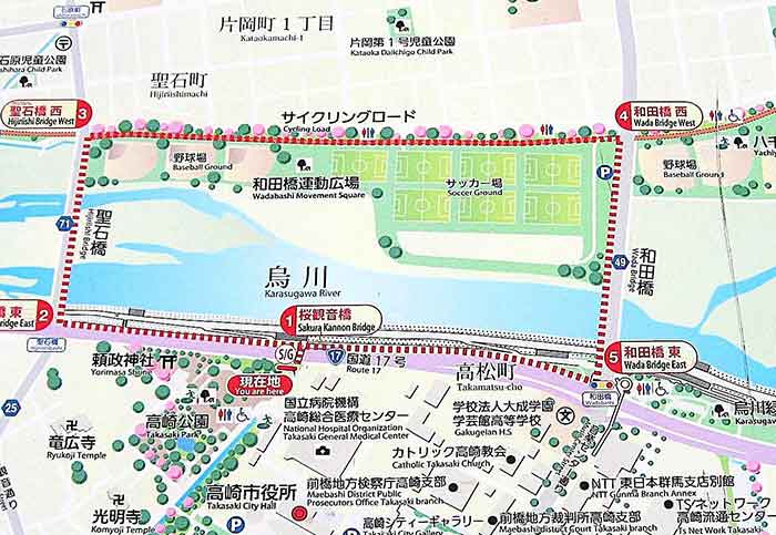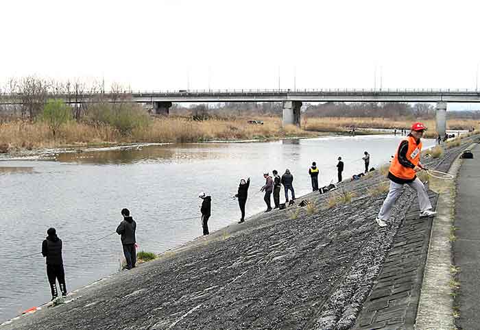 特に、高崎市を流れる烏川(からすがわ)高崎市役所前の流れでは特設釣り場を設置。3月24日までの4日間はルアーフィッシングとフライフィッシングに限定される為、さながらルアーとフライマンはお祭り騒ぎ。さらには半年ぶりにここに集う見慣れた顔、新しい顔、久々の顔に会話もはずみ、毎年恒例のこの行事に、好むと好まざるとにかかわらずかなり盛り上がっている。