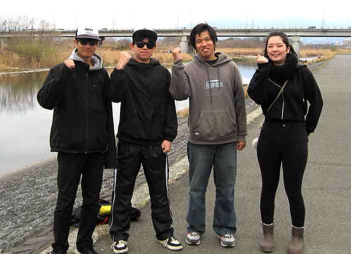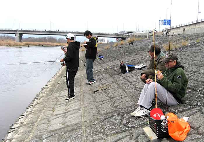 高校生・中学生が多く、ほとんどがルアーフィッシング。これは未来を感じさせる嬉しい出来事だ。釣れるから集う。仲間うちの情報交換力は凄く、意外や上下関係もしっかりしていて、アタリが遠のくと誰ともなく自転車で斥候にでかけ、指で何匹出たと合図を送る。ほぼ全員が一瞬のうちに情報を共有する。
