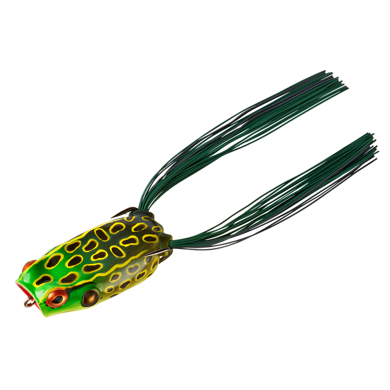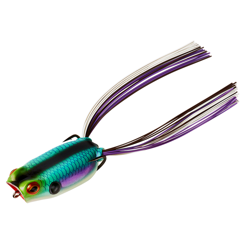 ポッピングサウンドでその存在をバスにアピールできるポッパータイプ。ロッドワークを加えると首振りアクションを起こします。溶接アイ、そしてダブルフックも頑強なものを装着し、パワーゲームに負けない強度を確保。シリコンラバーのレッグはバスの興味を惹き、最終的にアタックさせてしまうアピール力を持っています。