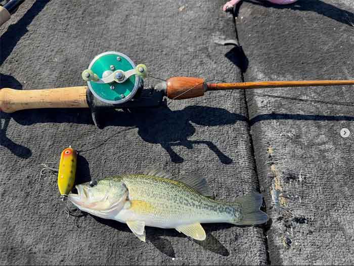 Very special fish for you I understand that. Antique tackle, using the antique rod and reel with the new plug. That’s very nice. Yes, I remember talked him out and having me signed the other one.