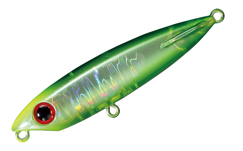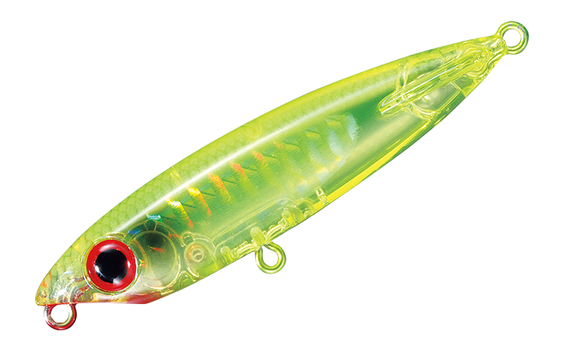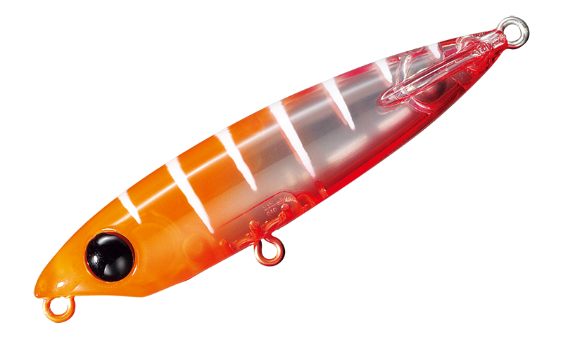 本体最後部にタングステンウェイトを搭載し、抜群の飛距離をほこる「チヌペン」は、小刻みなトゥイッチを加えた際にテールを中心として左右へ頭を振り、強い水押しを発生させ引き波を残してアピール。