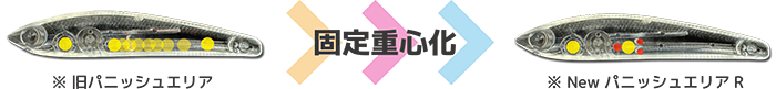 重心移動仕様だったパニッシュに対して、敢えて固定重心仕様になるよう内部構造のチューンを試みました。 エステルラインや先調子寄りのロッドも多用される昨今のエリアトラウトシーンでの扱いやすさを改めて見直し。ラインの水切り音を抑えた低入力のトゥイッチングでも、軽快且つキレの良いアクションを実現。 レンジ&コースのコントロールにもより磨きを掛けたエリア専用モデルです。